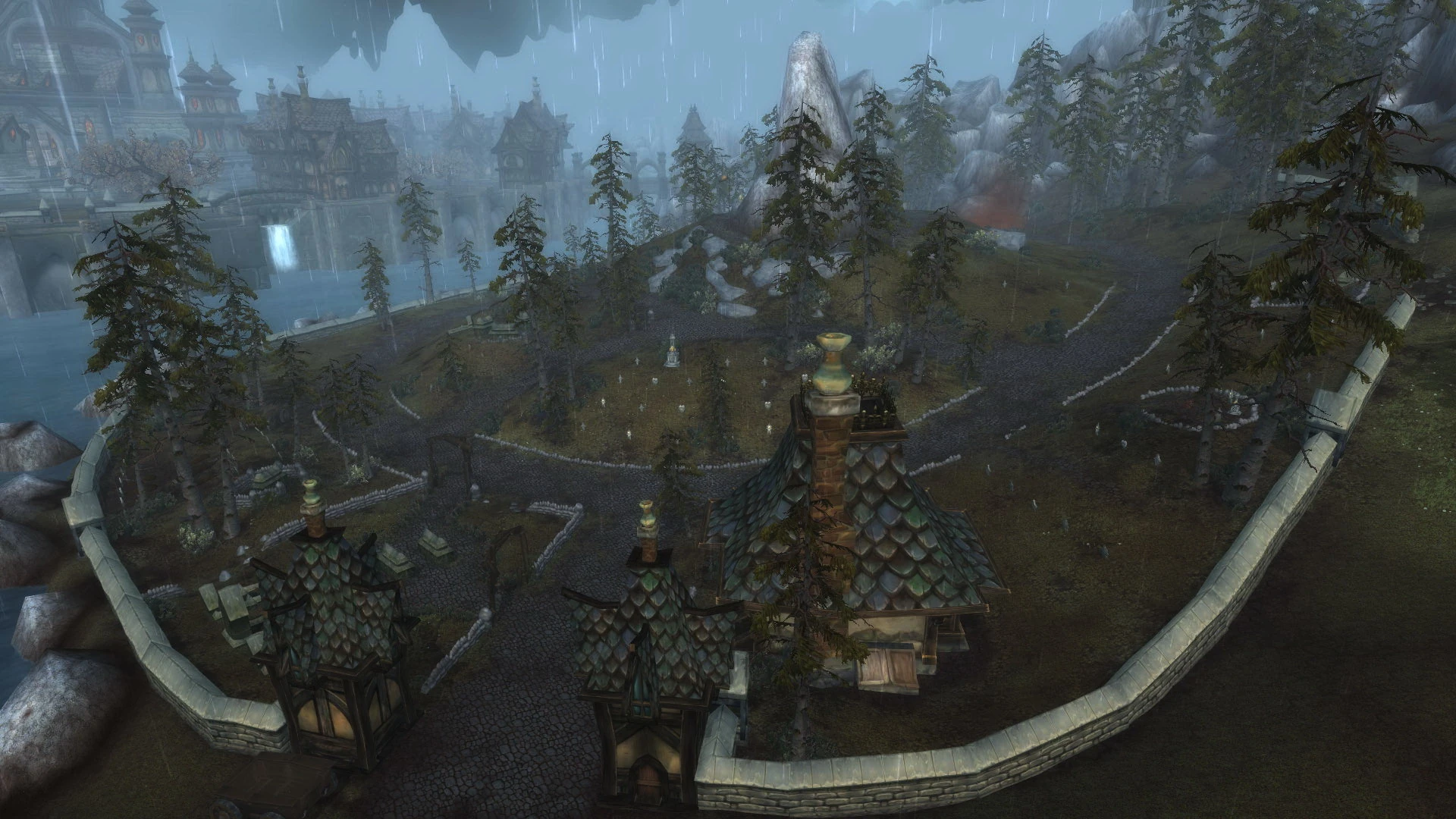 A shrine is at the highest spot, marked with a flag of Gilneas. Called Aderic's Tomb, this also becomes the final resting place for Liam Greymane, the son of King Genn Greymane, who died while fighting Sylvanas Windrunner and the Forsaken as they attempted to claim the capital city.