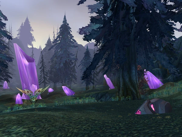 Ammen Vale is a small island and subzone off the coast of Azuremyst Isle. It is a lightly forested valley with escape pods, crystals, and smoking bits of the crashed planar ship scattered about the landscape.