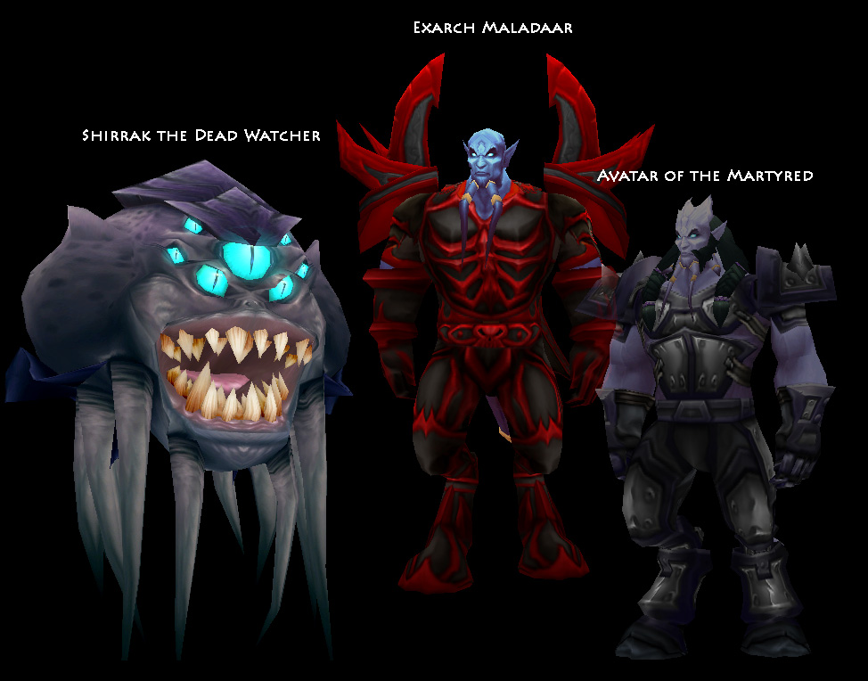 - Exarch Maladaar - Maladaar periodically summons a "dark side" shadow of random player characters, who lose 50% of their damage and healing while the shadow persists. He also summons an avatar of himself at about 25% health.
