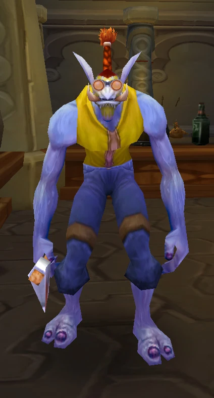 He seems to have an obsession for cooking gnomes, believing them to be the pinnacle of flavour. In many of the daily quests he gives, the quest-ending NPC ask are you sure its 100% rhino meat and no gnome this time?.