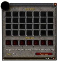 Each character can purchase up to seven bag slots in the bank. The cost of the bag slots in the bank increases with each extra slot purchased, starting at 10
