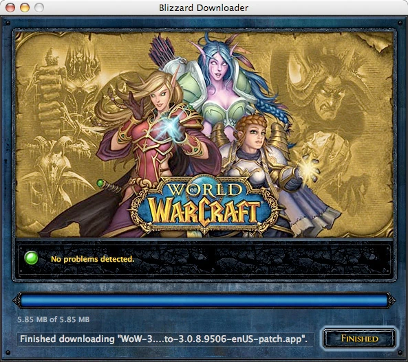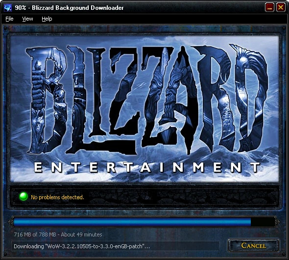 Cataclysm expansion, the downloader's look was updated to match the overall look of the expansion. Because the downloader is rarely seen standalone, most players won't notice it's new look. The downloader is now usually only called from the launcher, if set to run while the main game is running.