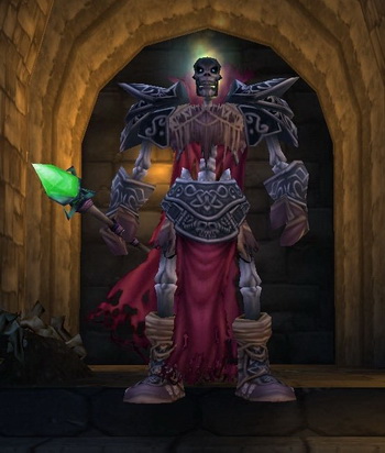 Bloodmage Thalnos is a level 32 elite skeleton mini-boss found in the Graveyard of the Scarlet Monastery, just below the staircase at the far end of the graveyard itself. Although he lacks any distinguishing mortal features, judging from his title it is assumed that Thalnos was once a blood elf mage prior to his undeath.
