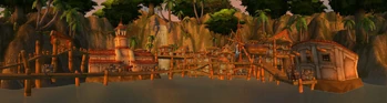 Run by the Blackwater Raiders who are closely associated with the Steamwheedle Cartel, the port offers facilities to any traveler passing through, regardless of their faction. Combined with the world renowned Salty Sailor Tavern, it is one of the most popular locations in Azeroth.