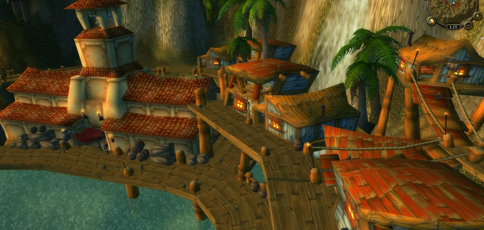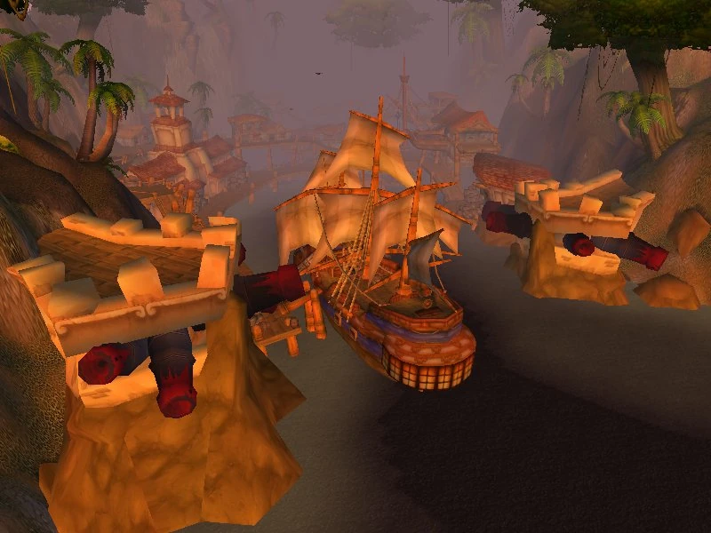 During the alpha phase of World of Warcraft's initial development, Booty Bay was designed differently. However, with the way boat transportation was going to work, change was needed.