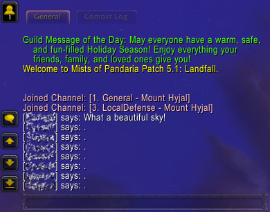 - ^ Xaldavan 2009-01-21. 13/02 GM Chat Window Change (3.0.8). Archived from the original on 2009-01-21.