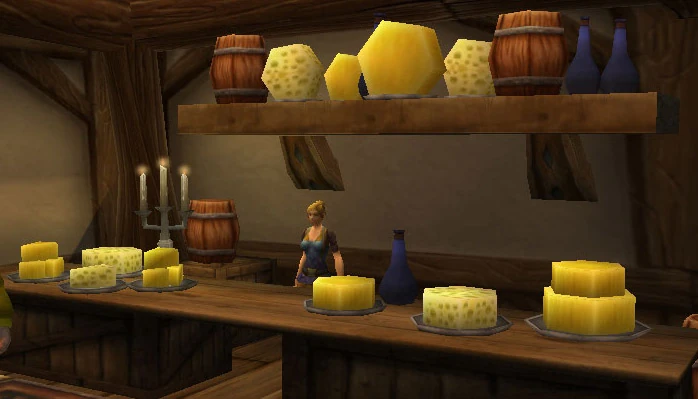 Cheese is made from curdled animal milk and is one of the six main types of food in WoW.