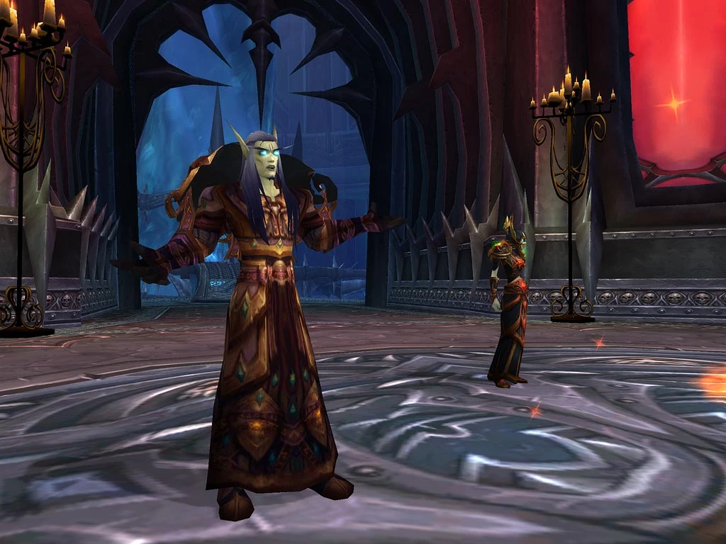 Darkfallen, most of the times, dress in red, orange and black garments, similar to their living cousins, the blood elves. They have assimilated the Scourge shared culture, and contributed with their own, which can be seen in the decoration of the Crimson Hall, inside the Icecrown Citadel.