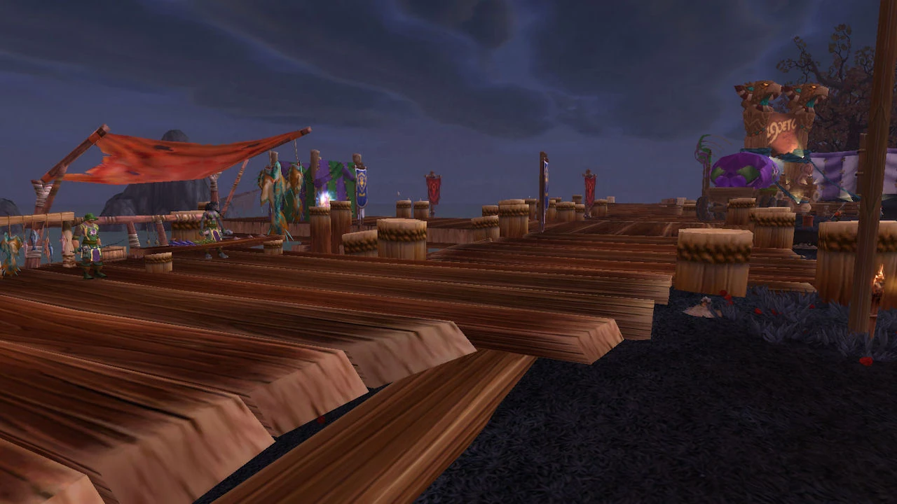 [50, 86]can be found in the southern-most area of the Darkmoon Faire on Darkmoon Island. The portals to Elwynn Forest and Mulgore can be found here, as well as the fishing trainer, Steven Stagnaro, and the fishing supplier, Tatia Brine.
