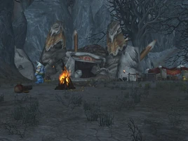 The Deadwind are a group of ogres found in Deadwind Pass that are dedicated to cleansing the region of all interlopers. Some speak of a "master", but it's unknown to whom they refer. They dress in foul rags, carry crude, rough weapons, and build their mounds into the very cliffside along the southern pass to look down upon the road, always at the ready to ambush curious adventurers. Few have escaped the attacks of this violent group.[1]