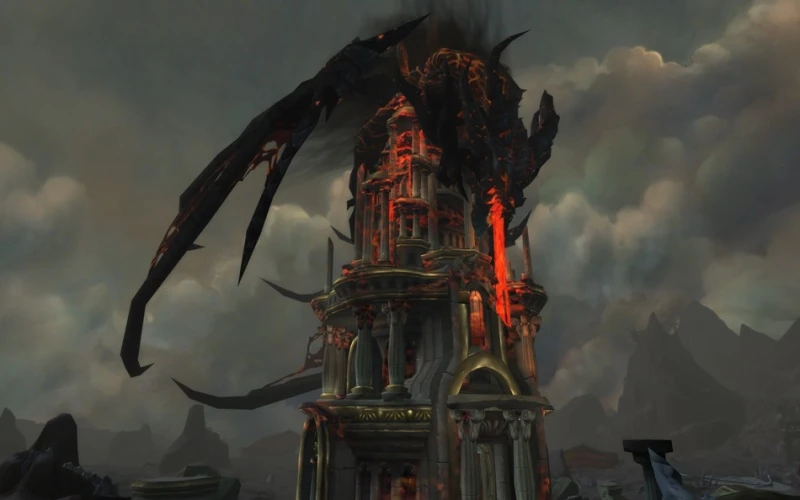 Following his explosive escape from Deepholm, Deathwing cast a deadly shadow over the people of Azeroth. Deathwing randomly chooses zones to attack; a blackened sky is the only warning before every living creature caught in his approach is consumed by his terrible fire and killed. Dying in this manner also rewards the