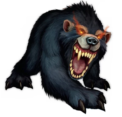 Some dire bears are known to have bony protrusions all over their body, as if their skeletons were trying to fight their way out. The omnivorous dire bear usually does not bother creatures that assiduously try to avoid it, but it aggressively defends a kill or other source of food. It does not hesitate to rip apart anything that might contain something edible.[1][2]
