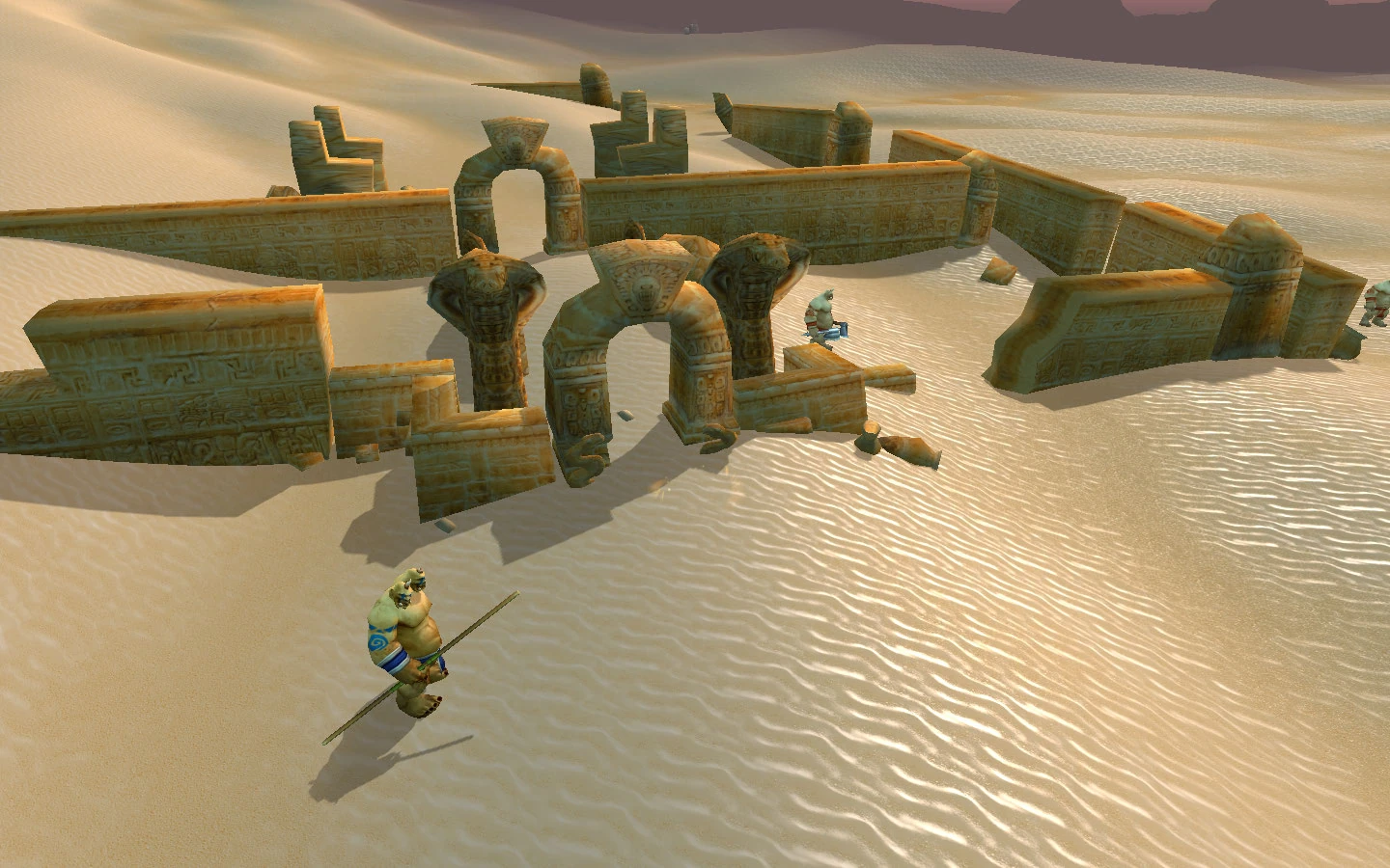 [47, 67]is an area of ancient troll ruins, in Tanaris, now taken over by the Dunemaul ogres from their stronghold Dunemaul Compound. Southmoon Ruins is also occupied by Dunemaul ogres.