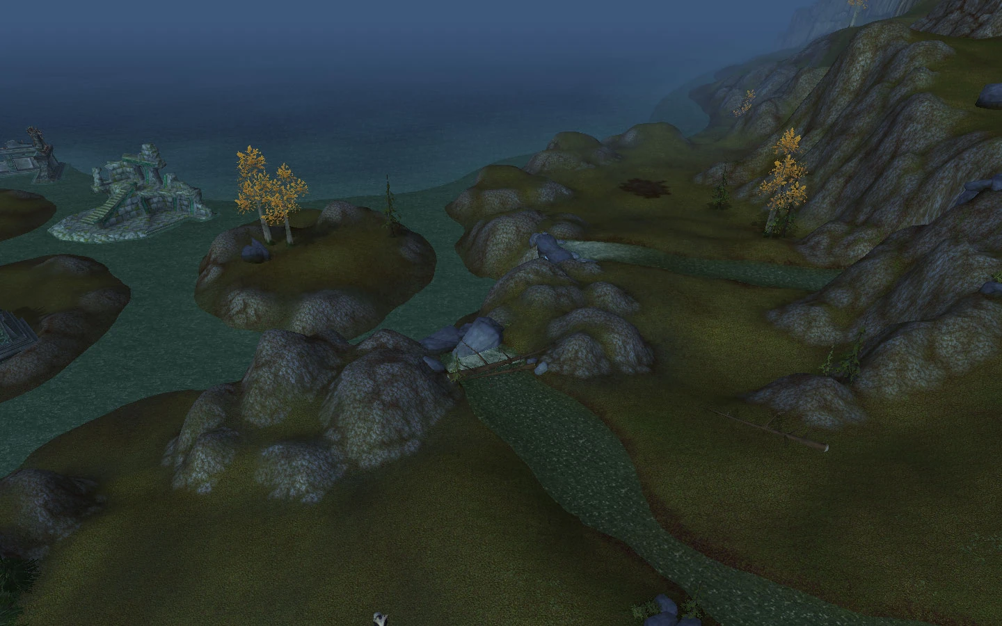The Eastwind Shore is a coastal area near Drakil'jin Ruins overlooking Bloodmoon Isle in the Grizzly Hills.