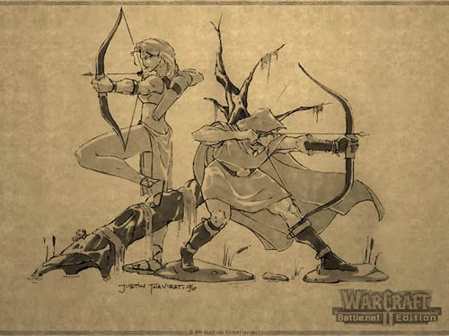 Elven rangers are a special cadre of elven archers who are intimately bound to the wildlands of Lordaeron. Their pursuit of mastery in Longbow, Marksmanship, and Scouting make them more rugged and even deadlier than their brothers — traits for which they are greatly feared amongst their enemies. These secretive and elite warriors have never involved themselves in the affairs of humans, but when Horde onslaughts threatened to destroy the elven homelands, they quickly offered their services to the Alliance. Although their numbers are few, their presence could change the course of the war if they are deployed wisely.[1] (W2Man 46)