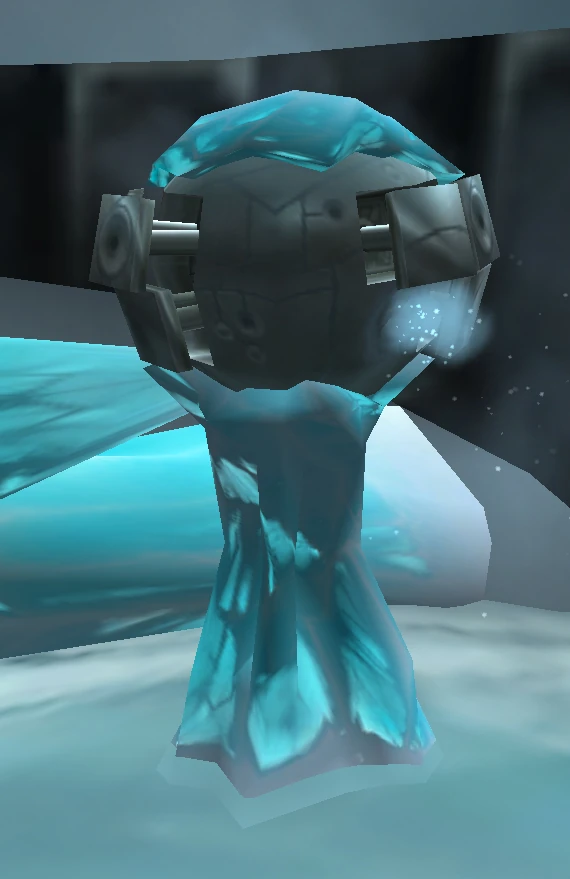 At the bottom of the shaft, encased in a pillar of ice, stands a mysterious device that seems to be spouting cold air. The enigma is called Norgannon's Binding and is used in the fusion of Norgannon's Shell and Core.