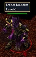 Eredar Diabolists are eredar warlockcreeps that practice diabolism and appeared in Warcraft III: The Frozen Throne. They can cast firebolts that stun and a "curse" that deals weak damage over time and if the target dies under its effect a Lesser Voidwalker appears to help the caster.