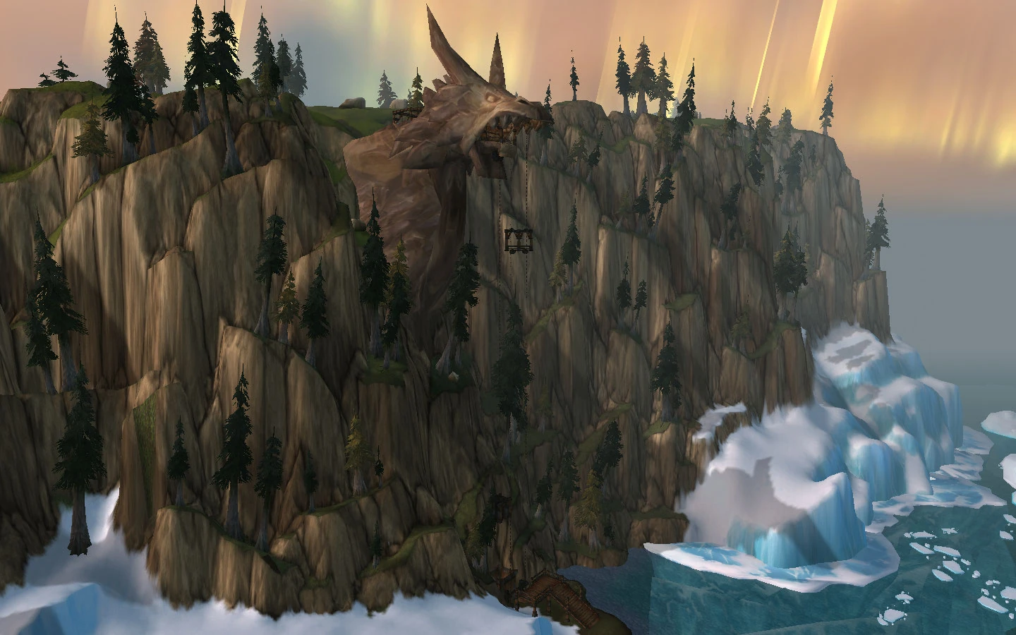 The Excavation Lift is the southern most lift found in Howling Fjord. Located nearby Shield Hill it connects directly to the ocean, as if meant for quick access to a vessel.