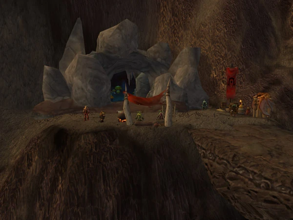 At Flame Crest you will find a small cave with two goblins, Kibler. The flight master, Vahgruk, and the vendor for food & drink, Gruna, stand there.