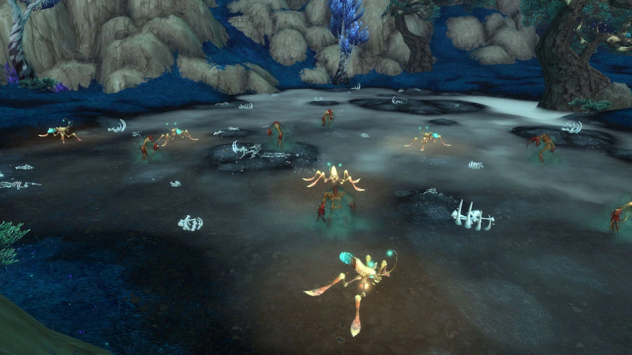The Forgotten Mire is a small bog located due east of Klaxxi'vess in the Dread Wastes. It is populated by mistlurkers and water striders. It should be noted for classes wanting to use stealth that the striders' passive phosphorescence negates these types of abilities.