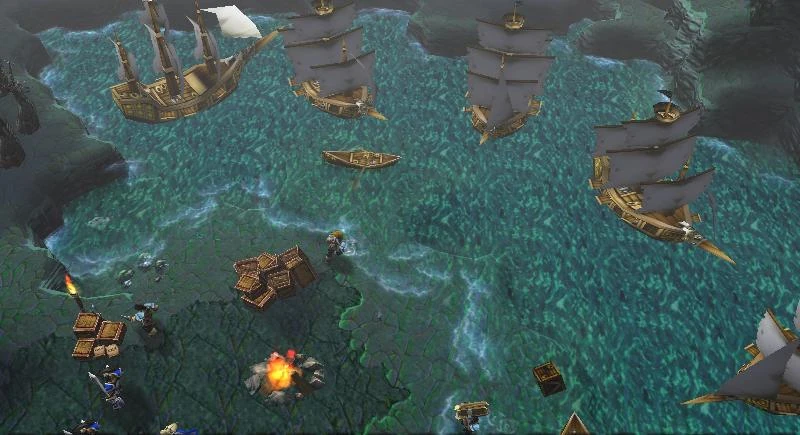 The Forgotten Shore was the main encampment of Arthas Menethil's forces when he set out to Northrend to destroy Mal'ganis. After finding Muradin Bronzebeard and his men and establishing a smaller base camp, Arthas went to rescue the rest of Muradin's men from the undead (Possibly at what is now Westguard Keep). A nearby second undead base was razed by Arthas' men, and they were ordered to build a new base on top of it. Later, a messenger from Lordaeron came and told them that they were to "pack up and leave". The Captain replied, "To hell with the Undead! We'll cut our way through the forest, men!" Arthas later returned, seeing that they were ordered to come back to Lordaeron. The prince, however, was determined to stay in Northrend until Mal'ganis was destroyed. He, Muradin, and two mortar teams recruited a number of mercenaries and destroyed the ships. Arthas then blamed the mercenaries, saying that they had burnt the ships (though it was technically true). The prince's forces later moved up to Drak'Tharon Keep.