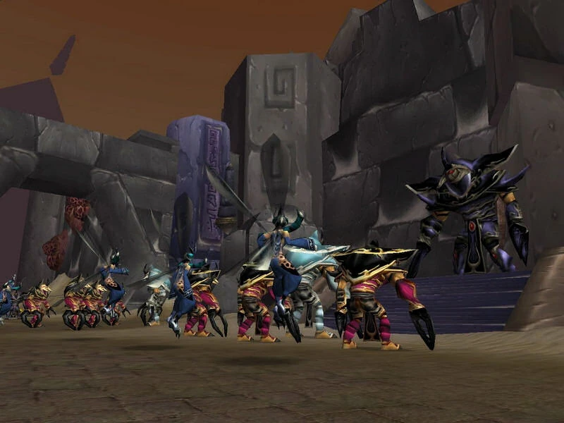 The way you work each wave is simple: When they come running into the room, have a warrior pull them back a little and then have a warlock start the chain fearing process. Druids will try to get one target each that they will hold rooted, and to help gain control, mages should also use frost nova. The Lt. General and Kaldorei Elite should automatically jump on a target so make sure you heal them when necessary. The NPCs can be hard to target and most healers will find a macro ("/target lieu") to be helpful. Once all the mobs are feared, the MT should grab the captain quickly, otherwise he might attack healers. Killing the mini-bosses first may be advisable, as every other mob can be held feared, rooted or frozen. After the captain is down, get a hunter's mark on a cleaver, than kill each one by one. After you are rid of the cleavers take out the warriors, and make sure you have every other mob feared or rooted. When there is only one warrior left, Alliance can cast judgement of wisdom or just kill the mob very slowly (if you are horde) to gain mana for the next wave of mobs.