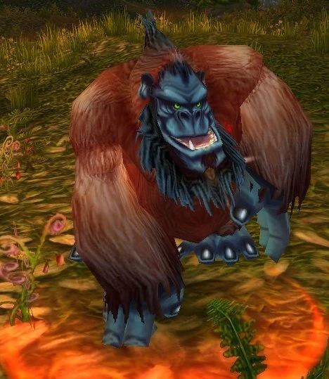 Gorillas are a species of ape found in Stranglethorn Vale, Feralas, Un'Goro Crater, and Sholazar Basin. Gorillas move around by knuckle-walking, although they sometimes walk bipedally for short distances while carrying food or in defensive situations. Adult male gorillas are known as silverbacks due to the characteristic silver hair on their backs. They are typically hostile to any travelers that come across them despite the fact that they are herbivores. An enormous gorilla named King Mukla dwells on Jaguero Island in southeast Stranglethorn Vale, holding a tauren named Princess Poobah captive.