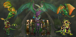The green dragonflight was nearly absent from the battle against the second coming of the Legion, also known as the Third War. The mortal races banded together and overcame Archimonde at the Battle of Mount Hyjal. In the aftermath green dragon guardians were stationed at Hyjal Summit, where they, along with the Reds, Blues, and Bronzes, guard the World Tree from another attack by the remnants of the Burning Legion in Darkwhisper Gorge.[21][22]