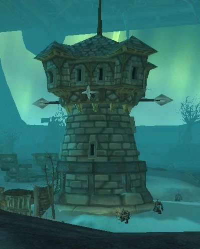 A guard tower at the entrance to Wintergarde Village (Carrion Fields).