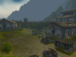 [32] The Hammer May Fall quest chain, groups of 5 Witherbark trolls occasionally spawn from the Witherbark Village in the south. They run up the path to Hammerfall's front gate and start attacking the guards. While the guards are capable of staving off each attack, players can also engage the attacking trolls, adding to the sense of threat from the Horde's enemies in the highlands.
