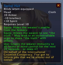 addLine("\124cff0070ddTinfoil Hat\124r", "Binds when equipped");