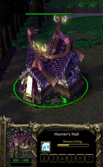 A hunter's hall is a place where the materials of war are imbued with the night elves' mystical enhancements. Wood and steel are fashioned into the stout armor using established traditions and methods stretching back thousands of years, as the spirits of the Ancient Guardians are invoked and their blessings bestowed upon each completed work.[1] (W3Man 60)