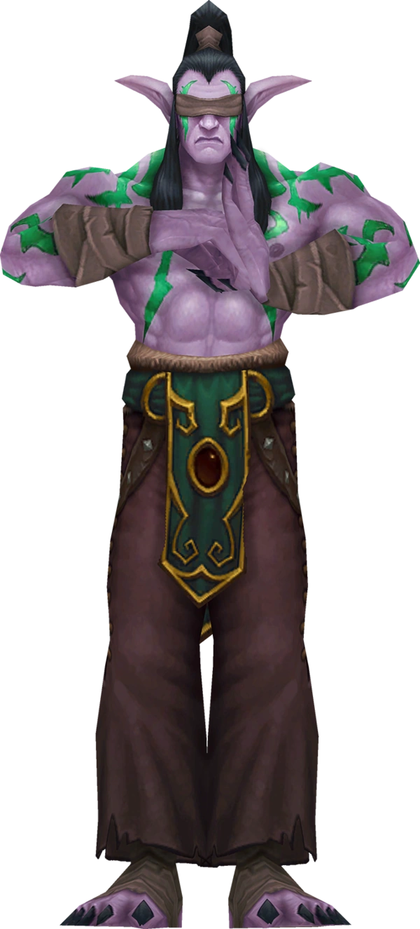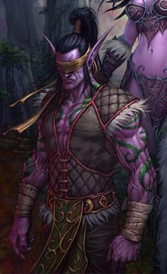 Illidan, also known as the Betrayer, was the twin brother of Malfurion Stormrage. He was a practitioner of Highborne magic. In his youth, he attempted to master the druidic forces as his brother had, but the sorcery called to him in a way that the magic of the land did not. Unlike his brother, Illidan was born with amber eyes; which was regarded by the elves as a sign of a great destiny— however, this actually indicated inherent druidic potential.[11] While Malfurion and Tyrande had found their destiny, Illidan was still searching for his. Though not a Highborne himself, he became the personal caster of the military leader, Ravencrest.