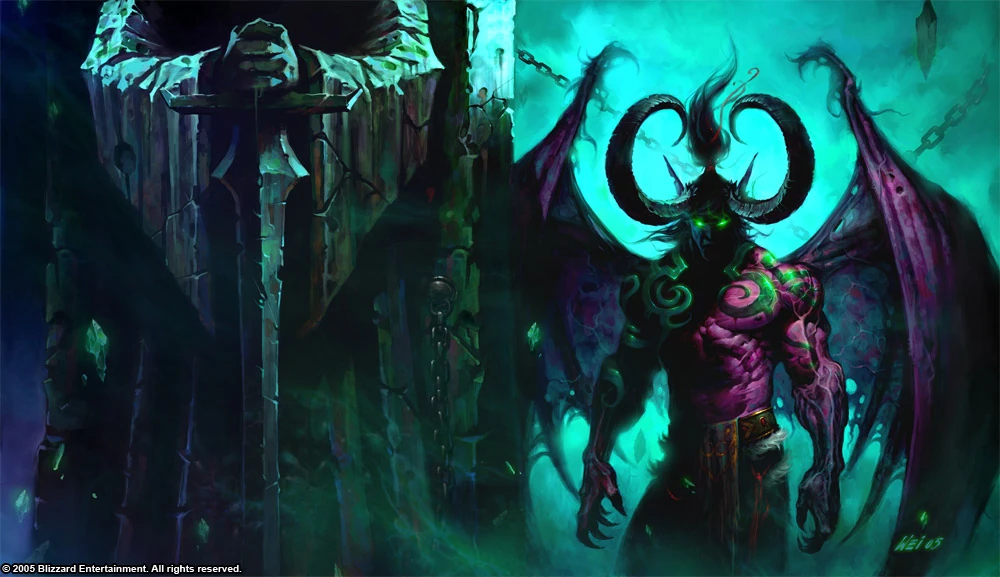 His pursuit of power and arcane mastery led him to commit a number of horrific acts against his own people and the races of Azeroth, including defecting to Sargeras during the War of the Ancients and creating the second Well of Eternity. For his actions, he was imprisoned for ten thousand years, until his release during the Third War. He came to be called the Betrayer for his acts against the night elf people and carried the title of Lord of Outland. Seeking to bring down her erstwhile prisoner, Maiev allied with Akama to invade the Black Temple, where she cornered Illidan in his inner sanctum and struck him down, bringing an end to one of the most tragic stories in Azeroth's history.