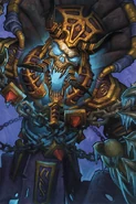 After long months of trekking through the harsh Arctic wastelands, Kel'Thuzad finally reached the dark glacier of Icecrown. He boldly approached Ner'zhul's dark citadel and was shocked when the silent undead guardsmen let him pass as though he was expected. Kel'Thuzad descended deep into the cold earth and found his way down to the bottom of the glacier. Within the endless cavern of ice and shadows, he prostrated himself before the Frozen Throne and offered his soul to the dark lord of the dead.