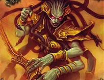 Vashj was Highborne (quel'dorei) and rose through the ranks to become Queen Azshara's chief handmaiden. She was described as "quite beautiful, with exotic, feline eyes" although she was still not as beautiful as Azshara herself. Vashj was fanatically loyal to Azshara and was infuriated when the queen offered to make Tyrande Whisperwind her majordomo; not only infuriated, but filled with jealousy that Tyrande's beauty and skill surpassed her own[citation needed]. Vashj tried to kill Tyrande on several occasions, even pretending that she would help Tyrande escape from her prison, but was stopped each time by the intervention of Elune.