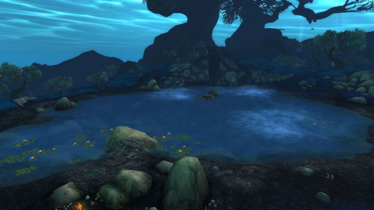 The Lake of Stars is a misty lake found in the southeastern part of the Dread Wastes, very close to the Serpent's Spine and bordering the Chittering Coast. Populated by crocolisks, they are being hunted by the saurok. The saurok also fight one another for the kills. A number of stealthed turtles can be found sneaking along the perimeter.