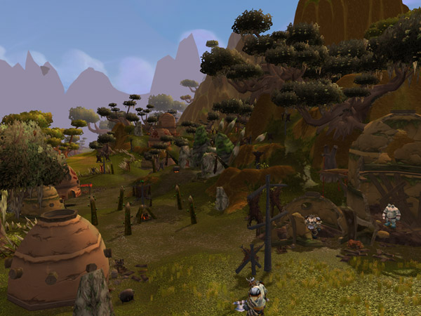 Laughing Skull Ruins are the remains of a Mag'har town in northern Nagrand that has been overrun and taken over by the Warmaul ogres. All of the houses and buildings are crumbling and broken barrels, jars, furniture, and debris lie everywhere. The ruins of the town serve as a home for the Warmaul Reavers and Warmaul Shamana of the Warmaul clan. Horde adventurers are asked by Warden Bullrok of Garadar to collect [Obsidian Warbeads] as an act of vengence against the destruction of the Mag'har town. Warden Moi'bff Jill of Telaar requests those of the Alliance to collect these beads from the Warmaul and then turn them in to him.