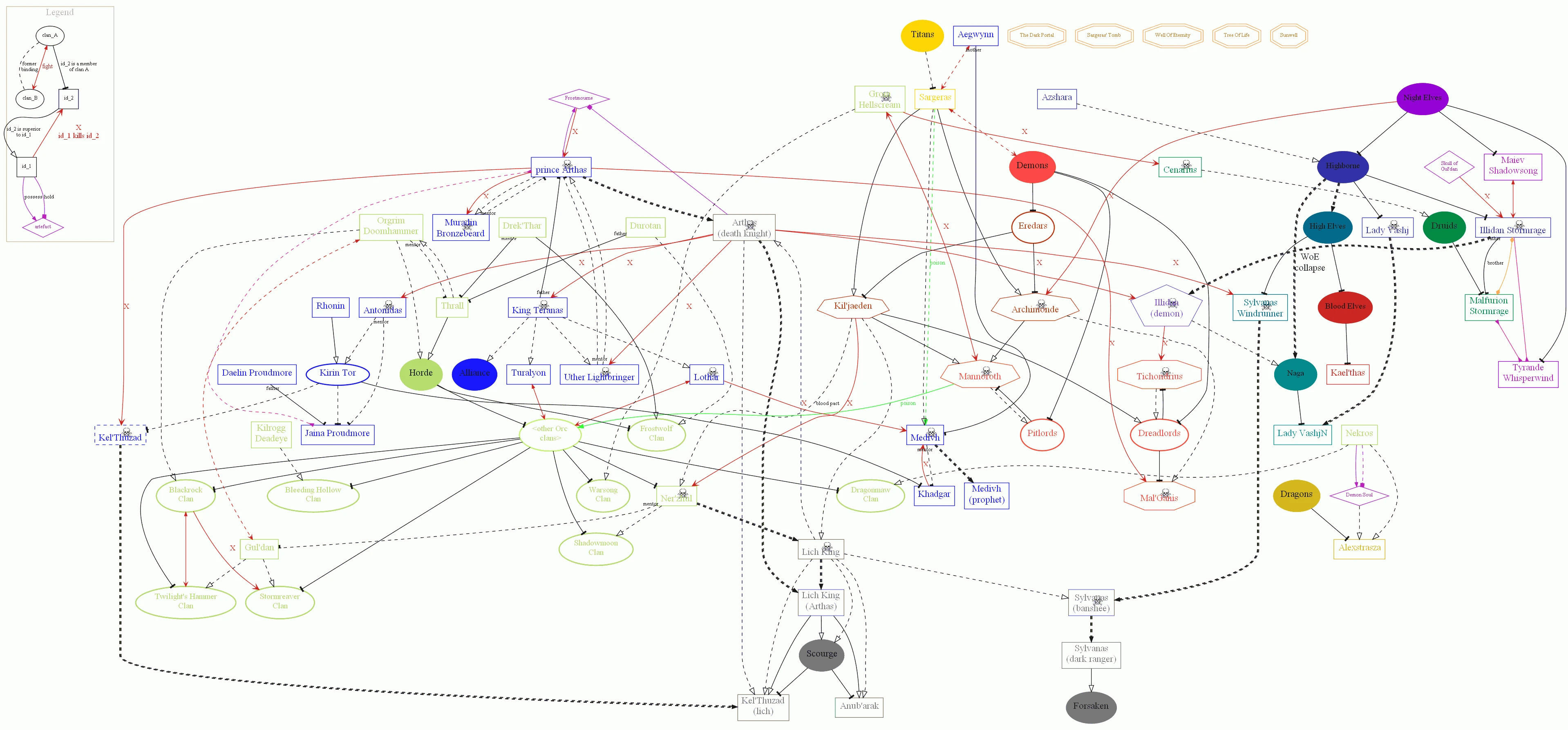 This is supposed to be a map of relations between the most important characters/clans/artifacts until the end of The Frozen Throne storyline. For all of you who are a bit confused by the tremendous amount of characters in the world of Warcraft. There are several versions available — see the project page.