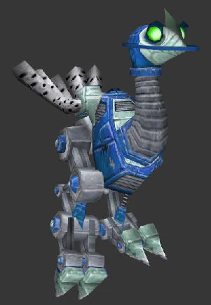 The mechanostrider v. 2.0 is the current version of the vehicle that the gnomish race employs. While these constructs are as dumb as a brick (and even some bricks are smarter, it is said...), they are reliable mounts and, when handled by the best mechanoriders, better than live mounts. A mechanostrider fights only when ordered to or threatened, lashing out with its sharp beak and claws, or simply hammering at the danger with its heavy metallic head.[1]