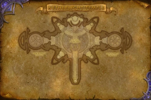 The Temple is divided into three sections, each aligned with one of the priest specializations in name: the Hall of Balance, home of the forge for Artifact Weapons, the portal to Lua error in package.lua at line 80: module 'Module:Inlinegfx/img_link_data.json' not found. Dalaran, and Felsmith Workbenches; the Sanctuary of the Light, where the purified naaru now floats; and the Sanctuary of the Void.