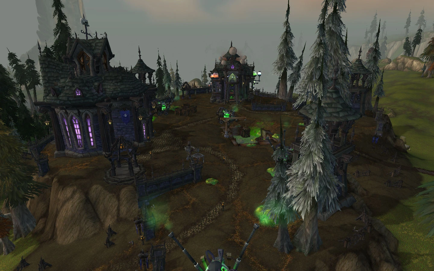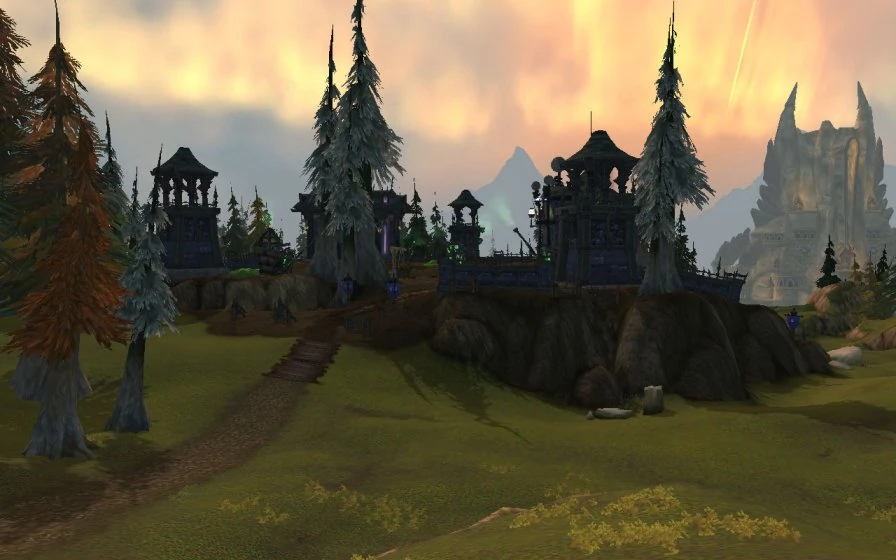 New Agamand is a Forsaken town in the Howling Fjord. Players are sent here after finishing the plague-related quest chains at Vengeance Landing. The town is presumably named after the Agamand family and their haunted mills, a symbol of the prosperity of Tirisfal Glades before the Plague of Undeath. Unlike other towns controlled by the Forsaken — which are actually ruined villages in northern Lordaeron, for the most part — this town appears to be a new construction. This town allows one of the first glimpses into Forsaken architectural style. New Agamand is at the front line of the Forsaken efforts against the Scourge. Since Sylvanas Windrunner's rise to power, the Royal Apothecary Society in the Undercity have been developing a "New Plague" intended to wipe out the Scourge. After several years of research, the Forsaken are now ready to unleash their ultimate weapon against Arthas' forces, and it will be at New Agamand where the testing begins.