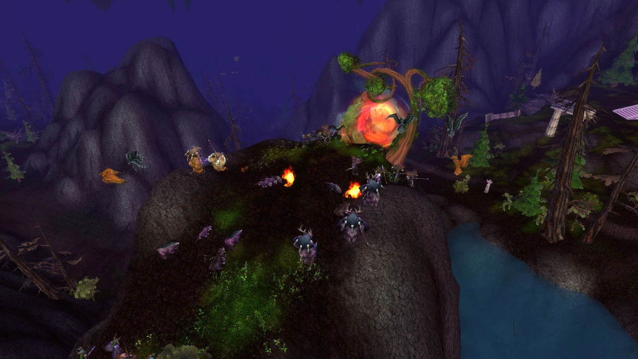 During the Invasion, a flamegate is set here and this is the assault point for Malfurion Stormrage and his druidic allies as they take the fight to Ragnaros and the Molten Front. After a short series of quests players may step through.