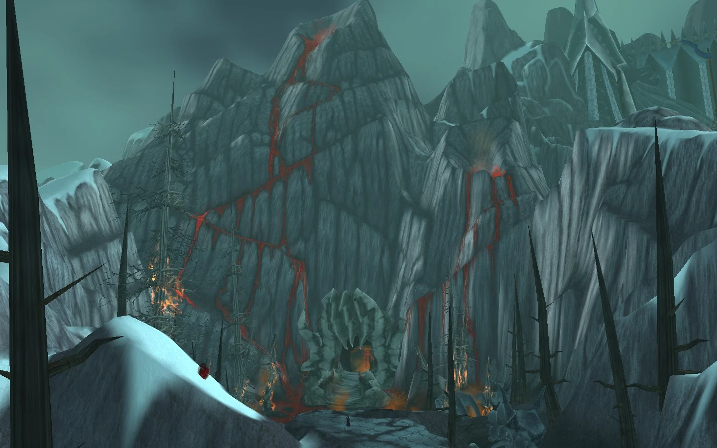 The Obsidian Dragonshrine is the black dragonflight's dragonshrine located at the base of a volcano in northwestern Dragonblight. This charred site is a sacred place for the flight and will do whatever is necessary to remove the invading Scourge. Adventurers are sent here by a bitter Nalice to aid Serinar in defending it. Its constant smoldering nature is reflective of the dragonflight's destructive nature, and is likely not due to the actions of the Scourge.