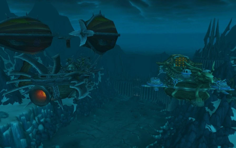 Orgrim's Hammer is also a common sight in the air near the Argent Tournament Grounds in northern Icecrown, as its circuit around the frozen wastes takes it through and around the mountains to the southwest of the Crusaders' Coliseum.