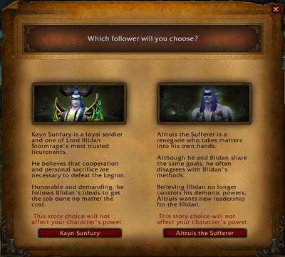 The chosen individual shall become your personal champion, and their ideology will color our decisions for the Illidari going forward.