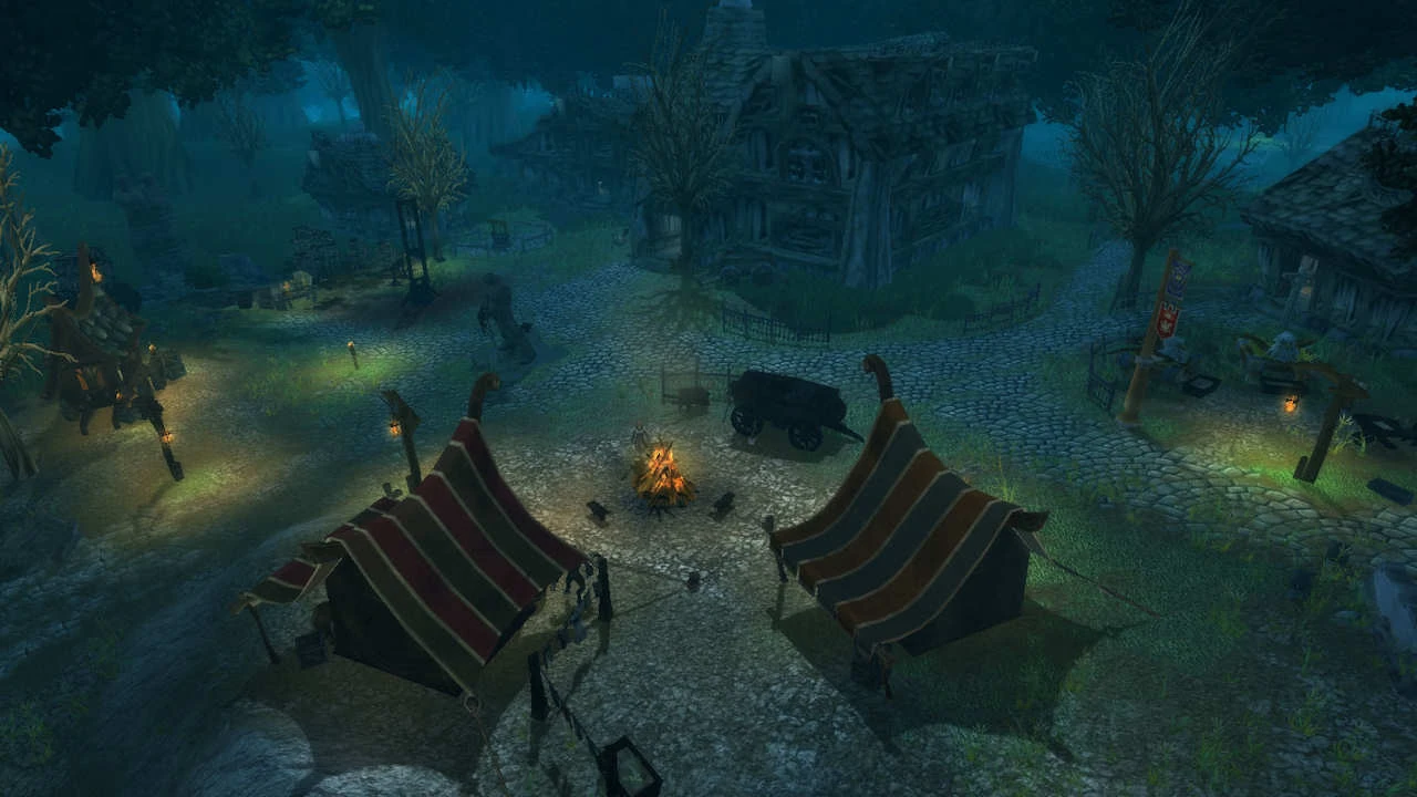 The village now holds only a few living persons - Jitters, an Alliance-friendly NPC whom players interact with for several quest series (in particular, the quest series leading up to Morbent Fel), and Bliztik the goblin vendor, who hides on the top floor of one of the buildings. Beyond Raven Hill lies the large town cemetery. This is where a lot of the higher-level Duskwood quests take you.