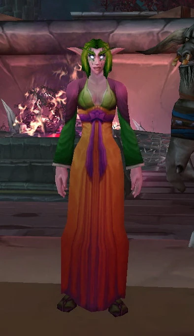 She also appears at the Argent Stand in Zul'drak as a level 74 elite. She and Rimblat do not give any quests here in Northrend, but are interactable and will speak of how devastated Zul'drak is.