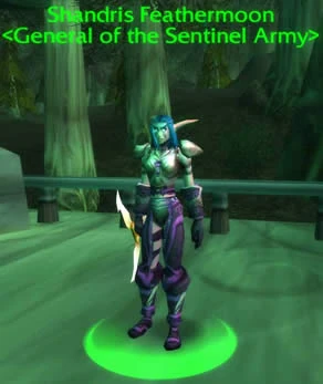 The realm is named after Shandris Feathermoon, General of the Sentinel forces, second only to Tyrande Whisperwind. Feathermoon also refers to the island stronghold she commands west of Feralas.