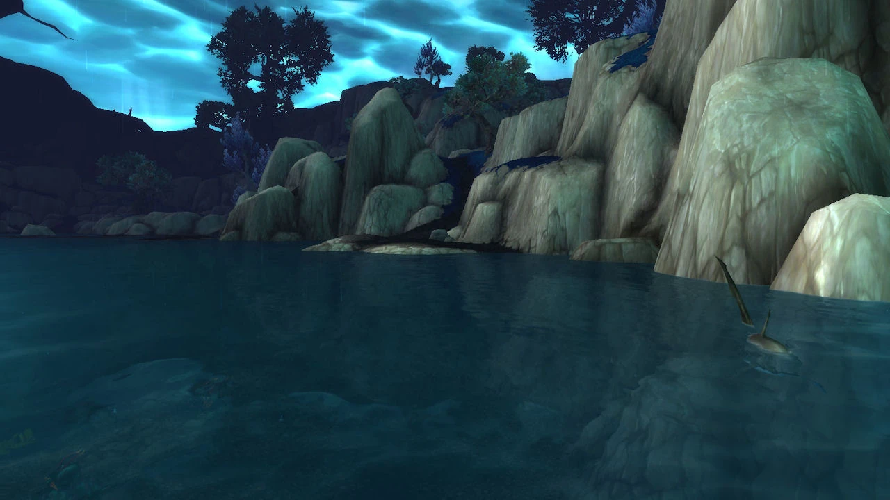 The Shelf of Mazu is a small area just beneath Mazu's Overlook in the Dread Wastes. It can be accessed by a path leading down from the Stinging Trail. Some of Pandaria's only makrura can be found in the waters here, swimming in small groups.